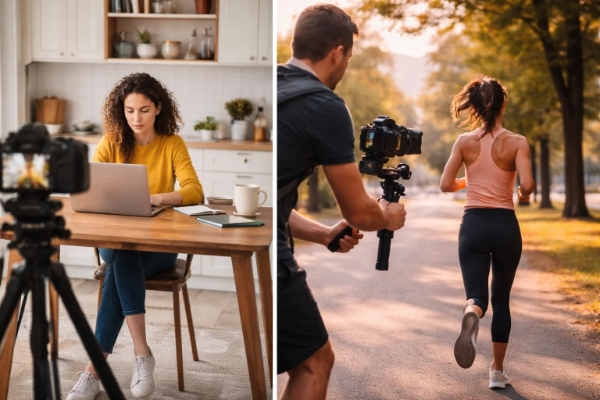 कैमरा नियंत्रण में रहे, चलते समय भी फोकस स्पष्ट हो, चित्र-रचना संतुलित रहे और प्रकाश में अनावश्यक परिवर्तन न हो।